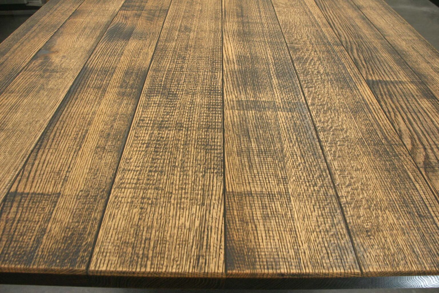 The finishing technique will allow for lighten somewhat by removing more of the “distressing” which appear black. While made of quarter sawn oak, which is characterized by a straighter grain pattern and medullary “flake” figure, this particular piece does not exhibit a great deal of the medullary figure.